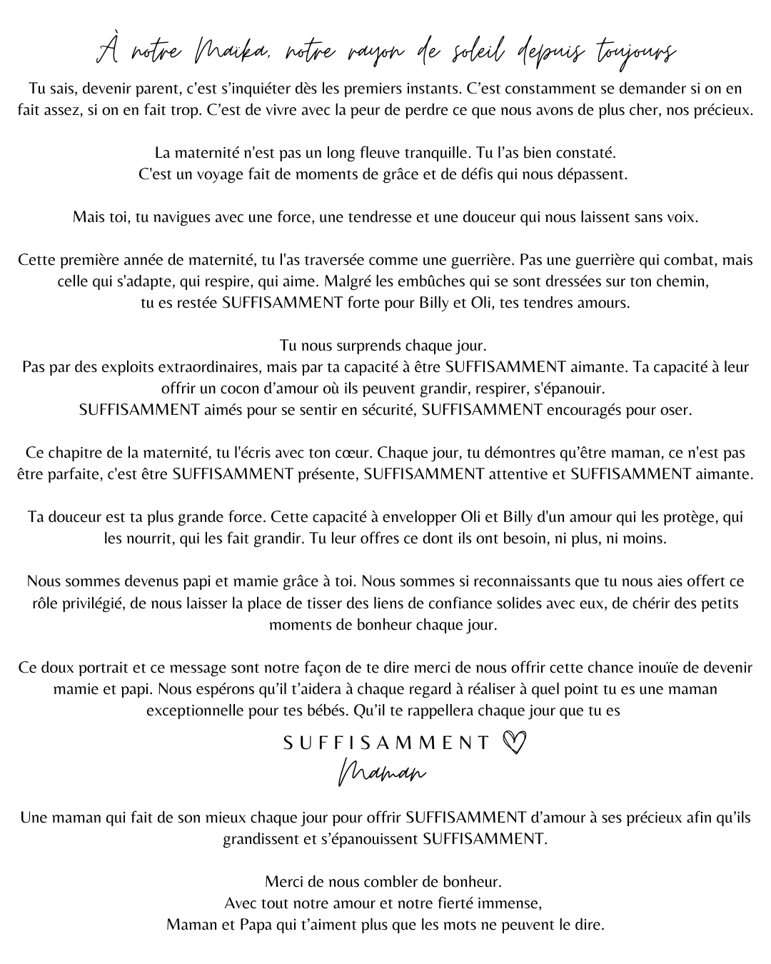 Je voulais créer quelque chose qui reste. Quelque chose qui parle directement au cœur et qui, chaque jour, rappelle à quelqu'un qu'il est aimé, qu'il est assez.